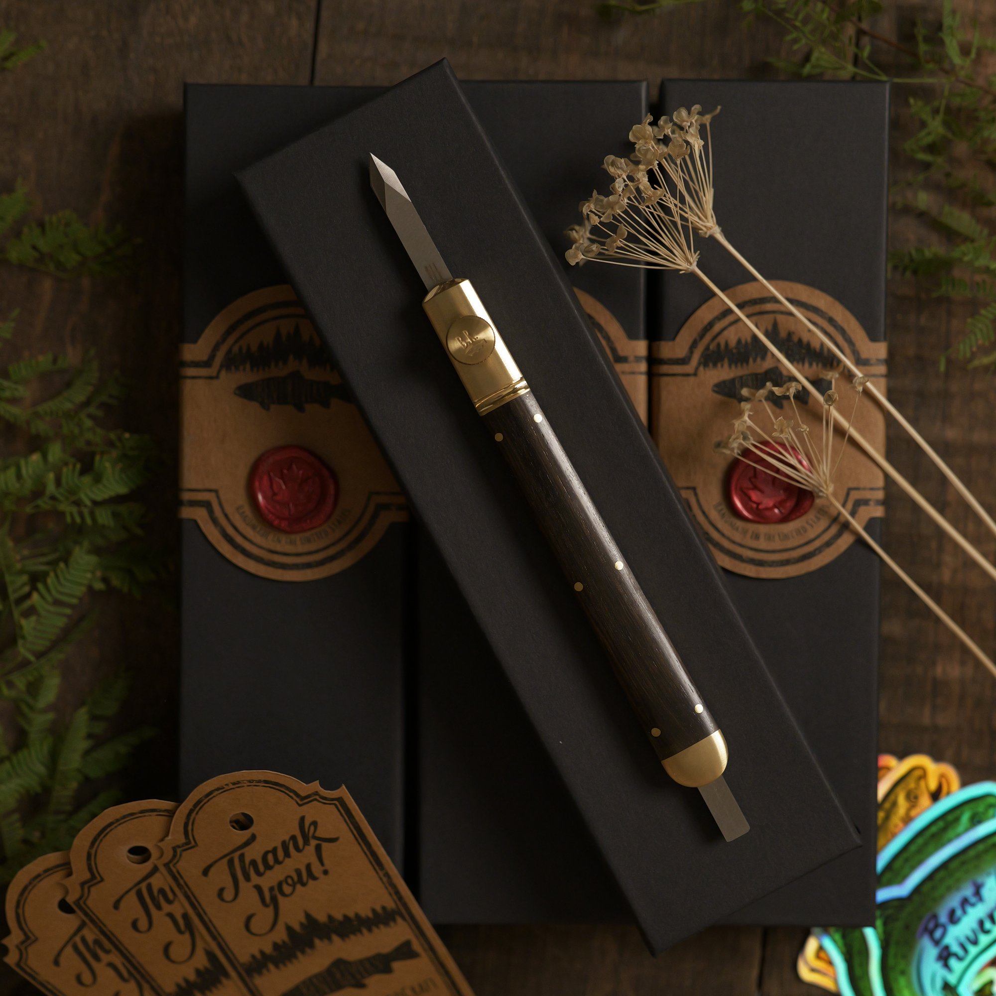 Bent Rivers marking knife with African Blackwood scales. Comes with a marking blade.